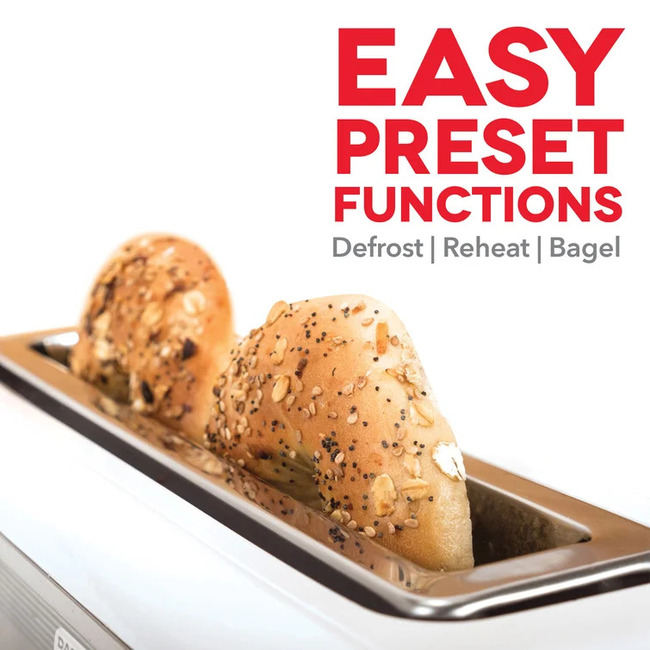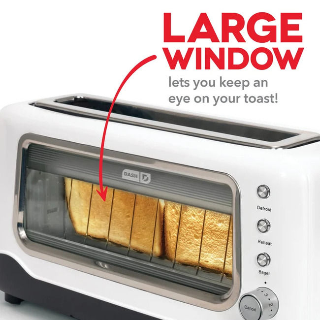 Feature: This Clear View Toaster Has 7 Baking Levels So You Can Make Perfect Toast Every Time. This Toaster Features One-Touch Defrost And Heat Buttons As Well As An Automatic Switch-Off Function For Safety. Extra Long Slots Allow You To Toast A Variety Of Breads And Baked Goods. The Slide-Out Crumb Tray Makes Cleaning The Toaster A Breeze, And Crumbs Won't Stay In The Toaster Or Smell Toasted.