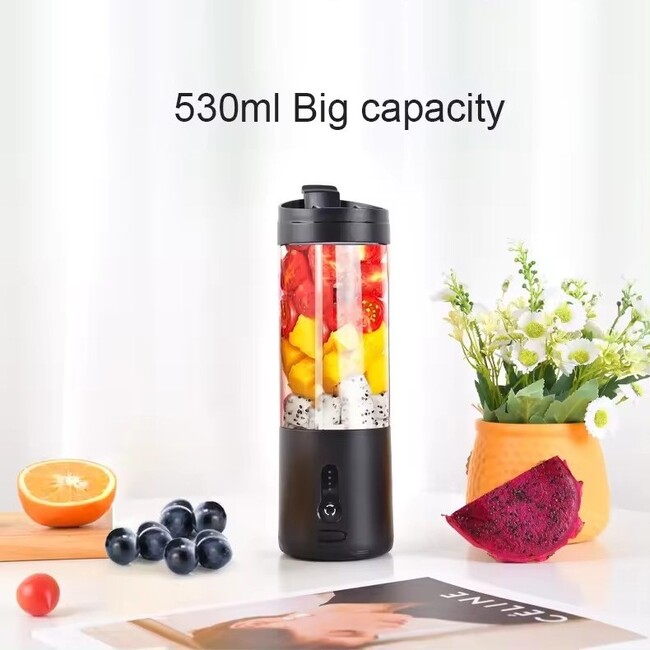Feature: 304 Stainless Steel Serrated Blade,Can Blend 15 Cups,Self-Cleaning,With Drink Lid,530ml Extra Large Capacity,Battery Double Cell 4000 MAh.