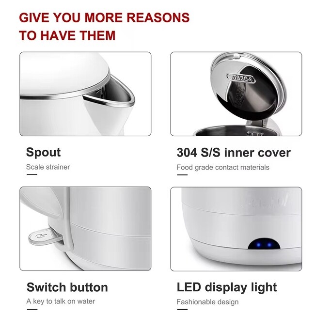 Feature: 360 Degree Rotational Base, Cordless, Boil-Dry Protection