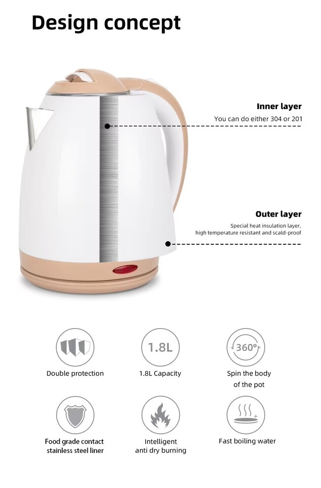 Feature: Boil-Dry Protection, 360 Degree Rotational Base, temperature control, Keep Warm, Cordless, Multi-temperature Control