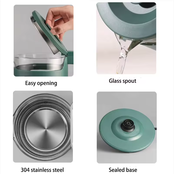 Feature: The 1350W Electric Tea Kettle Has An All-Glass Design So You Can Clearly See The Amount Of Water.This Kettle Boils Water Faster Than A Microwave And Is Safer Than Using A Hob.Auto Shut-Off Keeps The Electric Kettle From Boiling Dry.