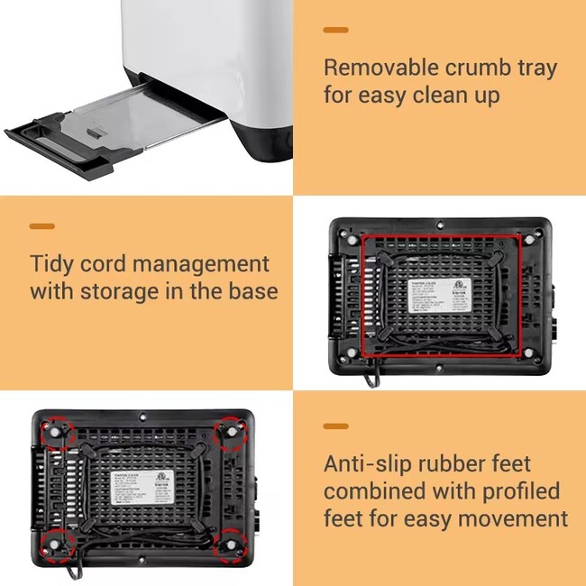Function: Automatic Pop-Up Function, Cancel Function, Defrost Function, Reheat Function, Removable Crumb Tray, Variable Browning Control