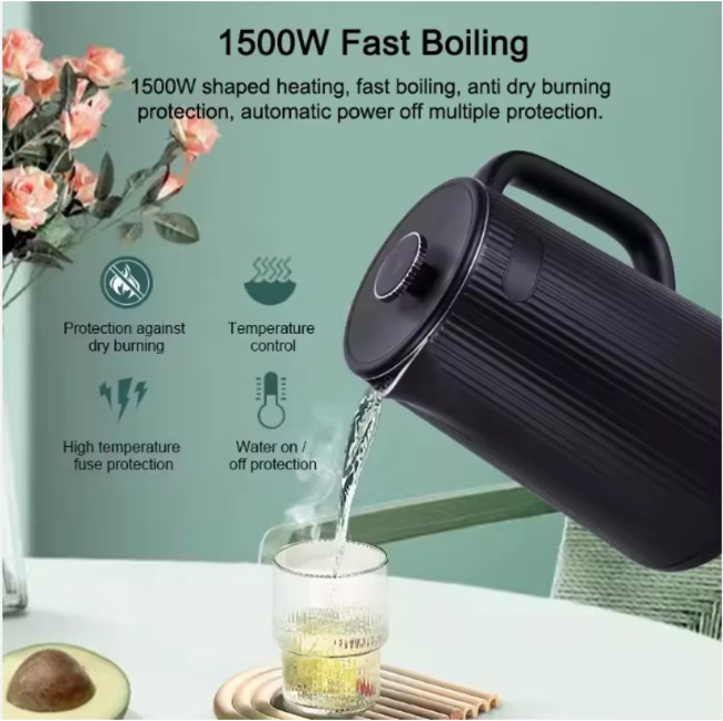 Feature: 360 Degree Rotational Base, Cordless, Keep Warm, temperature control, Boil-Dry Protection, Multi-temperature Control.