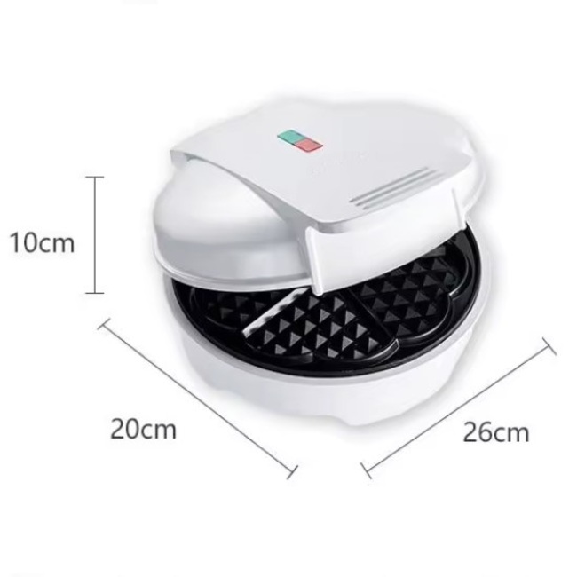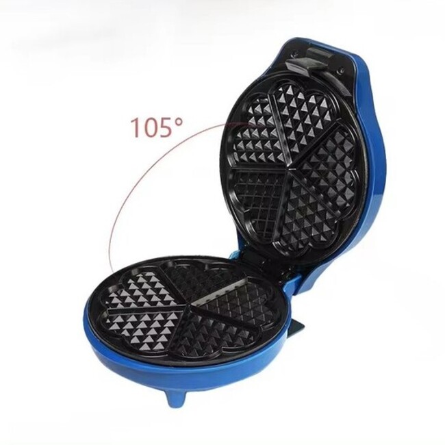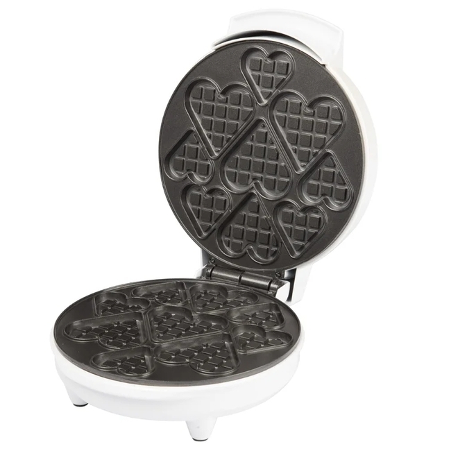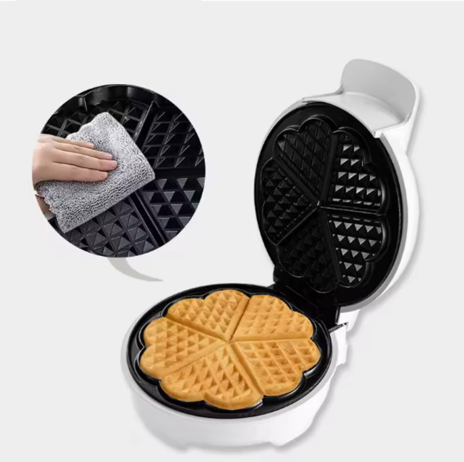 Feature: The Mini Heart Waffle Maker cooks 9 fun little heart-shaped waffles in minutes. The non-stick plate makes cooking a breeze and the indicator light lets you know when the waffles are baked to perfection.Nonstick coating for easy clean up. Wipe clean with a damp cloth. Not dishwasher safe.